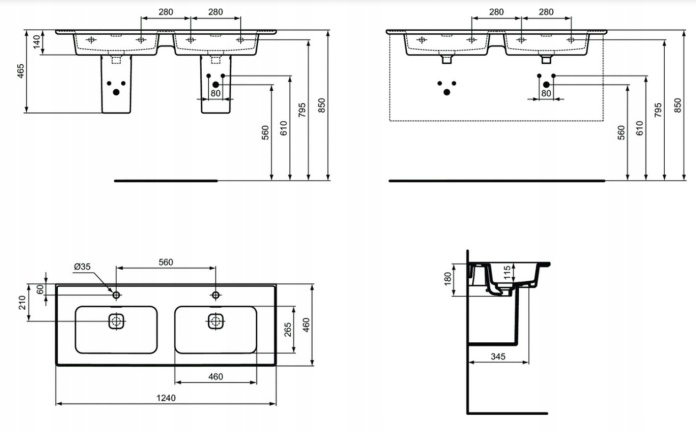 • Umywalka podwójna 124 cm.