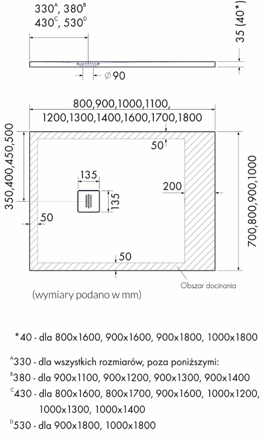 Opis produktu Schedpol Schedline Protos Black Stone Brodzik prostokątny 80x120 cm czarny 3SP.P1P-80120/C/ST-M1/C/ST